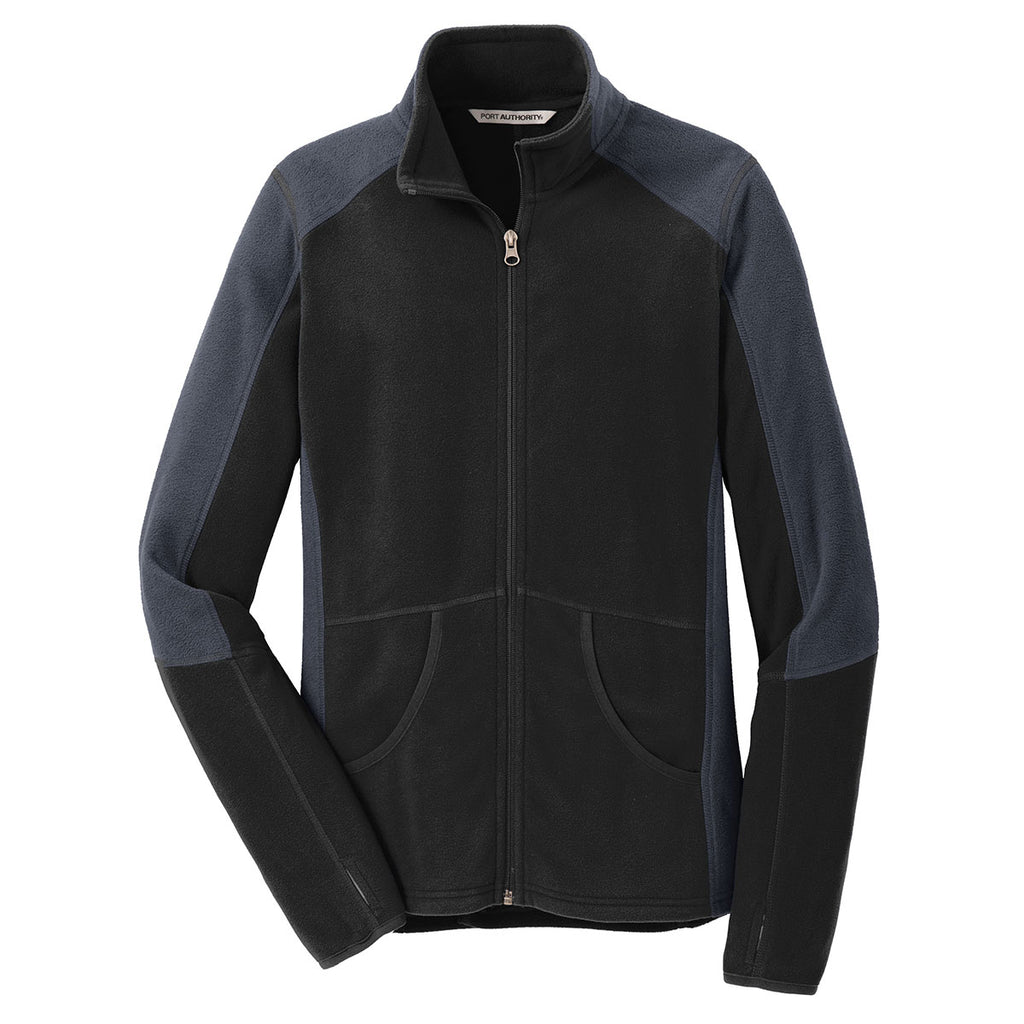 Port Authority Women's Black/Battleship Grey Colorblock Microfleece Jacket