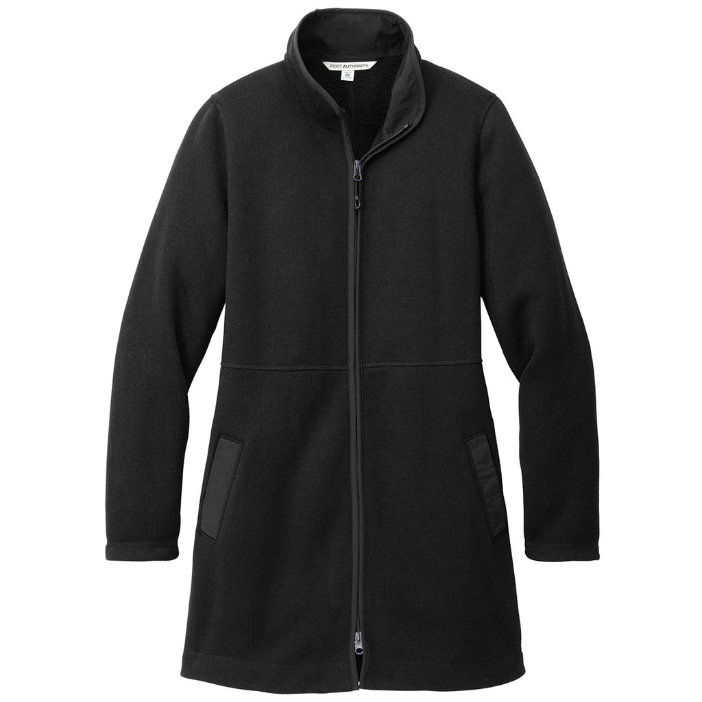 Port Authority Women's Deep Black Arc Sweater Fleece Long Jacket