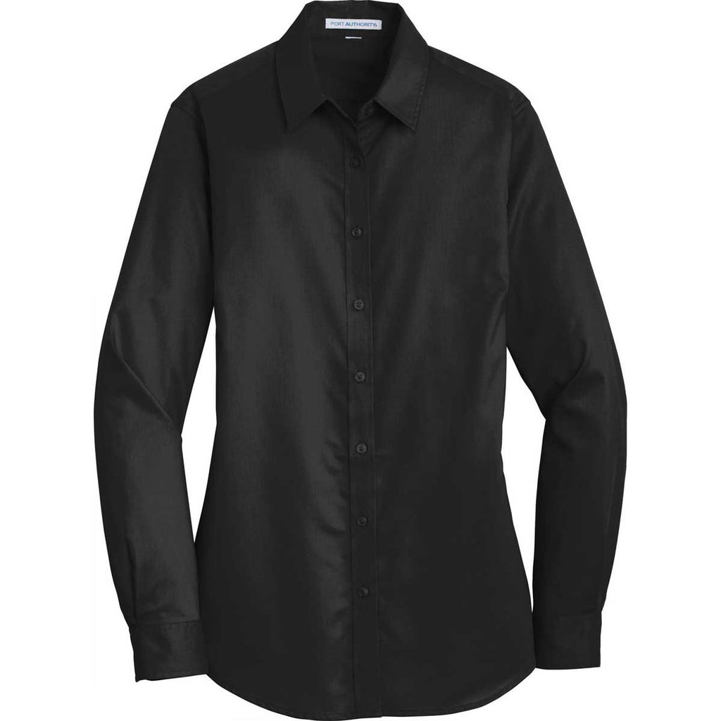 Dress shirts often succumb to unsightly wrinkles, which gives you a less than professional appearance. The Port Authority Women's Black SuperPro Twill Shirt resists wrinkles to maintain your stylish appearance throughout a busy day. Constructed with 55% cotton and 45% polyester, the Women's twill shirt also quickly removes stains. Dyed-to-match buttons complement the sleek design of the shirt. Attach your corporate logo to the large imprint area for creating an inexpensive way to get the word out about your business. The addition of a corporate logo makes the Port Authority Women's Black SuperPro Twill Shirt an excellent company gift for loyal customers and high achieving employees.Corresponding Men's Style: Port Authority Men's Black SuperPro Twill Shirt