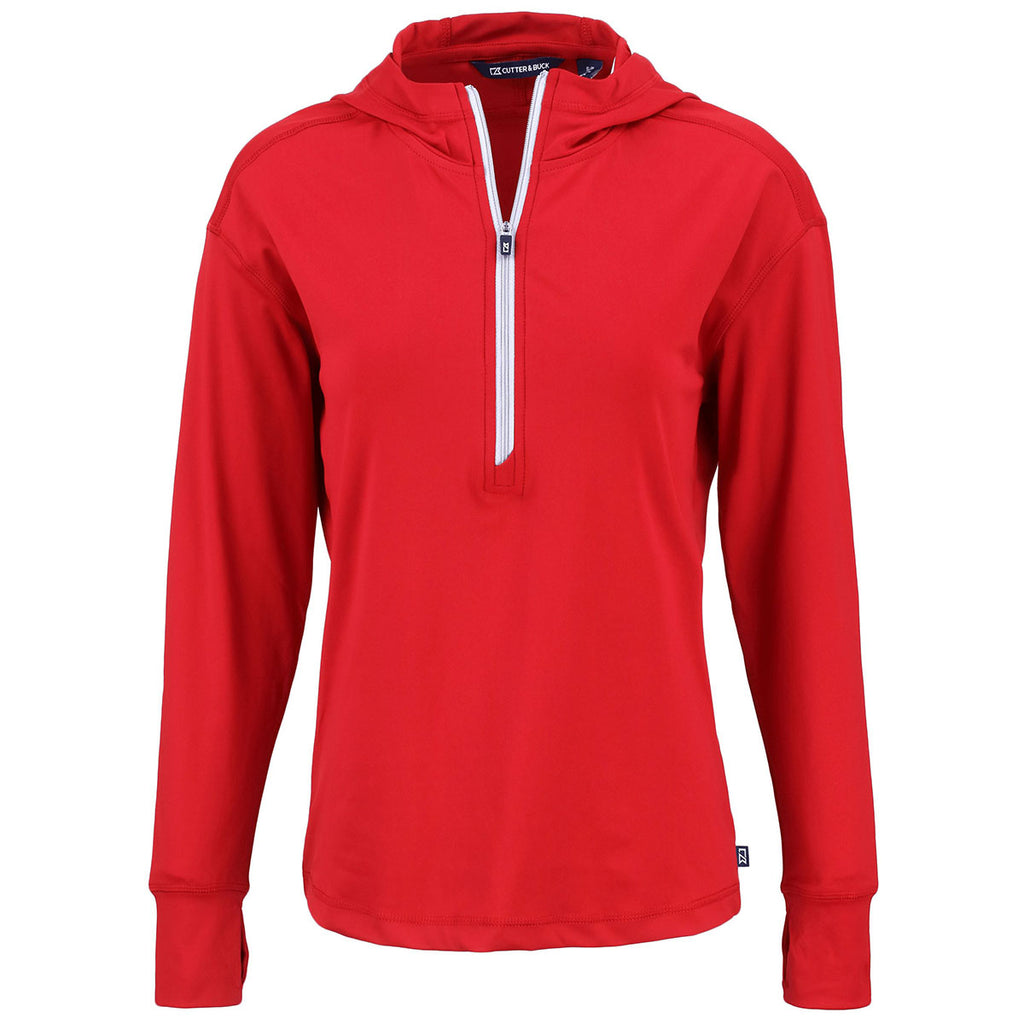 Cutter & Buck Women's Red Daybreak Eco Recycled Half Zip Hoodie
