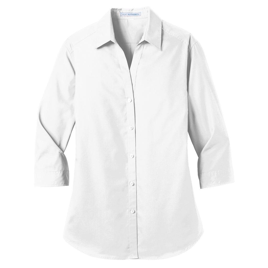 Port Authority Women's White 3/4-Sleeve Carefree Poplin Shirt