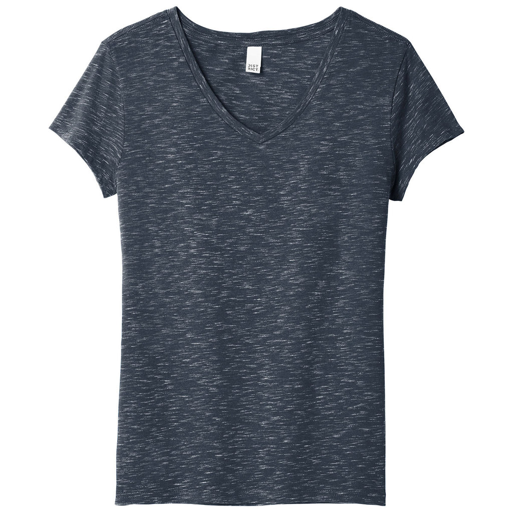 With a relaxed fit that blends in seamlessly at company casual social events, the screen printed District Women's New Navy Medal V-Neck Tee is an excellent addition to new employee gift bags. Shoulder to shoulder taping produces a structured look that withstands the pounding delivered by active lifestyles. Enjoy the super smooth feel of 90% ring spun cotton, as well as polyester fibers that bind together to resist rips and tears. Wear the tee as an only layer at a picnic and as the first layer of a cool weather fashion ensemble. Attach your corporate logo for getting more exposure at industry trade shows.
