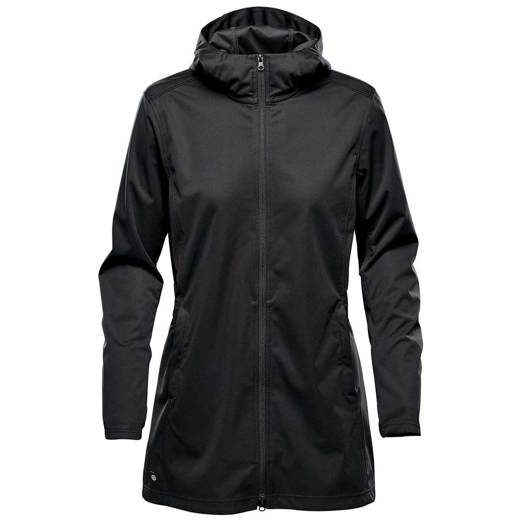 Add custom embroidery to the Stormtech Women's Black Belcarra Softshell to create a corporate gift that everyone can enjoy. The full zip front keeps you protected with an attached hood. The sleek design of this softshell jacket makes it perfect for nearly any event. Wear it to a company outing, add a team logo to wear to games, or a company logo to use as workwear. With breathability and water resistance, this is a must have for every profession.Highlights