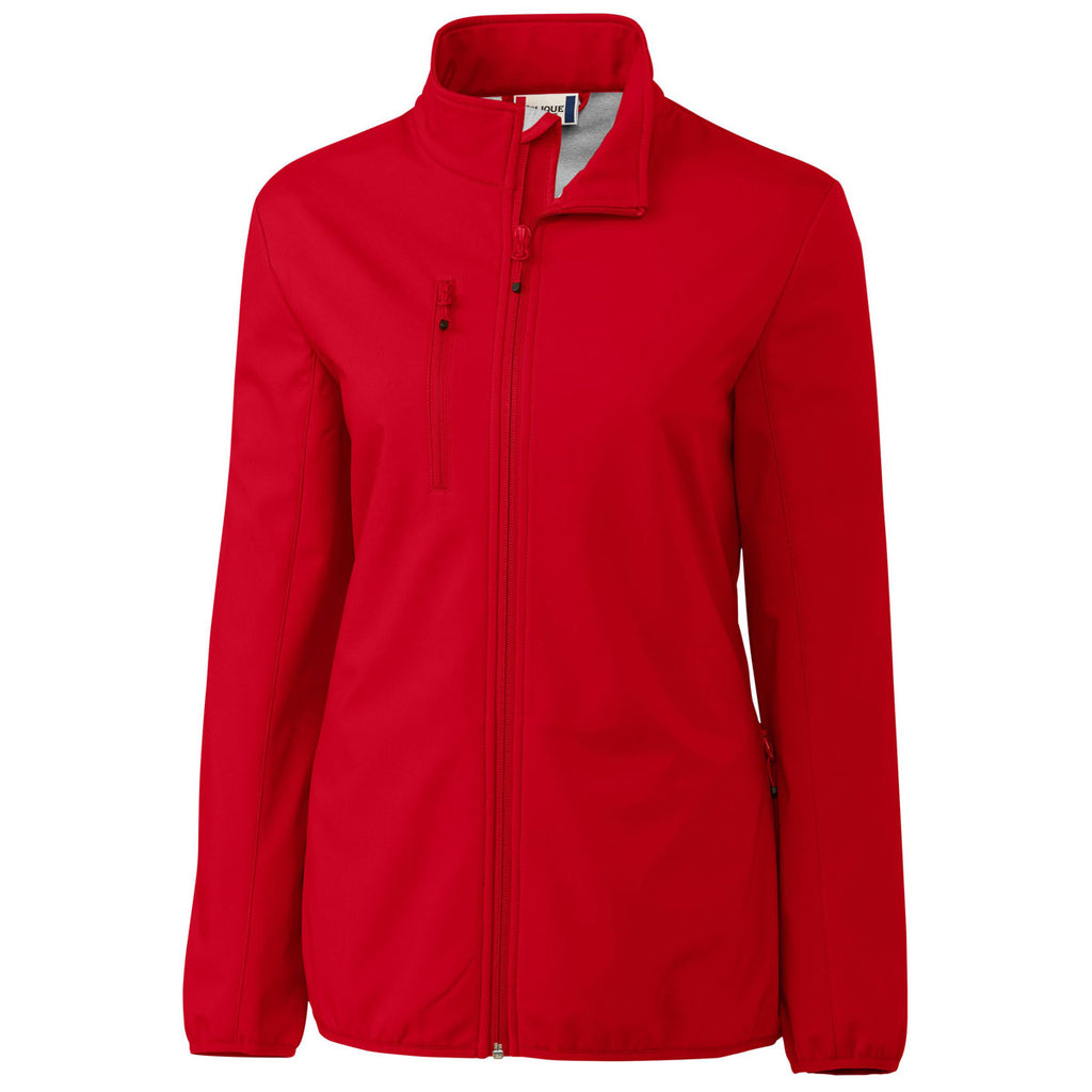 A touch of spandex makes the company logoed Clique Women's Red Trail Softshell perfect for professionals that spend plenty of time outdoors working and playing. Enjoy enhanced mobility, as you cut down tree limbs for a home improvement project or set up a tent for a weekend camping trip. The highly breathable softshell jacket quickly removes moisture to deliver supreme all day comfort. Add a custom logo on the large embroidery area for setting the marketing tone at the next sales conference. The mostly polyester fabric resists rips and tears to give you a softshell jacket that lasts for years to come.