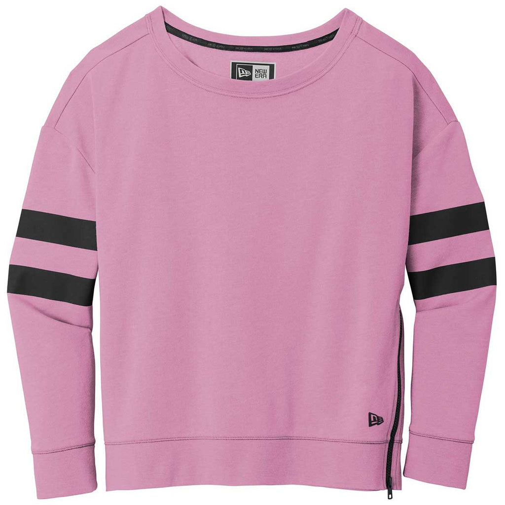 Your screen print will be noticed on the New Era Women's Lilac Heather Tri-Blend Fleece Varsity Crew. Offering a boxier silhouette that is a bit shorter than most, this relaxed crew screams attitude through fashion flair. Add a custom logo to the varsity crew made of a cotton, poly, rayon fleece blend and accented with silicone print stripes on both sleeves to offer as an option for a team event. A great choice as an end of the year gift for those in college who like something with a bit more edge. The wide open neck and left side vision zipper make this a great piece for layering or wearing alone. Place an order today to have these on hand for whatever you may need.