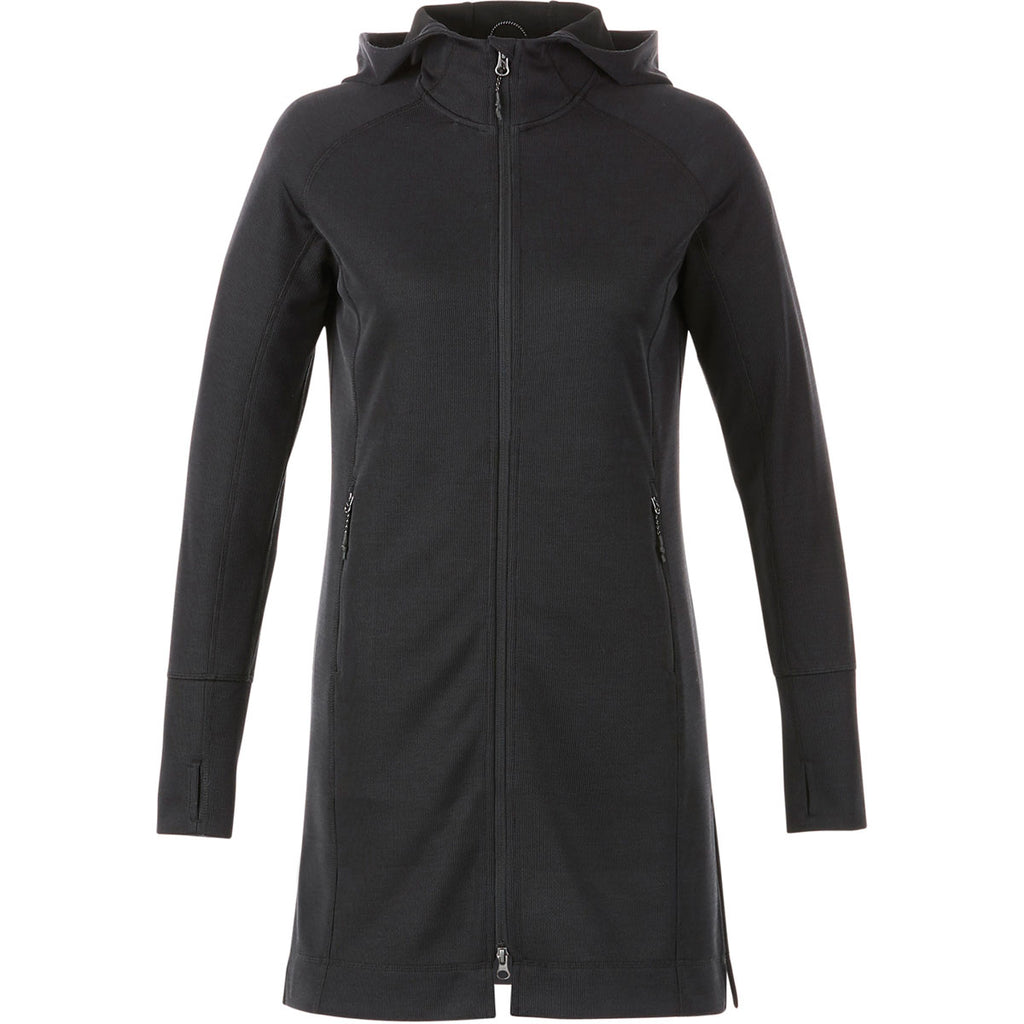 Elevate Women's Black Odell Knit Zip Hoody is not only on point, but comes in a functional tunic length for women who want to look and feel their best. Perfect as a corporate gift or as required employee apparel, no one will complain about this moisture wicking hoody with sleeve cuffs, ear bud cord guide, exit port, and thumb exits. Whether working in cold weather or taking part in a team building activity these hoodies with a custom logo will be a must have. Corporate embroidery is a great way to showcase your company while allowing everyone to look their best. Order several in one of four available colors and a range of sizes!Corresponding Men's Style:Elevate Men's Black Odell Knit Zip Hoody