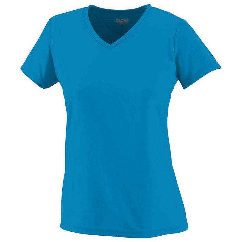The logoed Augusta Sportswear Women's Power Blue Wicking-T-Shirt is the perfect shirt to wear to the gym or when taking part in all of your favorite outdoor activities. Available in 20 different vivid colors, this attractive t-shirt comes complete with many must-have features, including wicking capabilities, v-neck collar, heat sealed label, double-needle hem sleeves and bottom, and more. With your company logo set in embroidery on this soon-to-be favorite shirt, you have a new employee apparel option or clothing item to hand out to guests at trade shows, recruiting events and corporate golf events.
