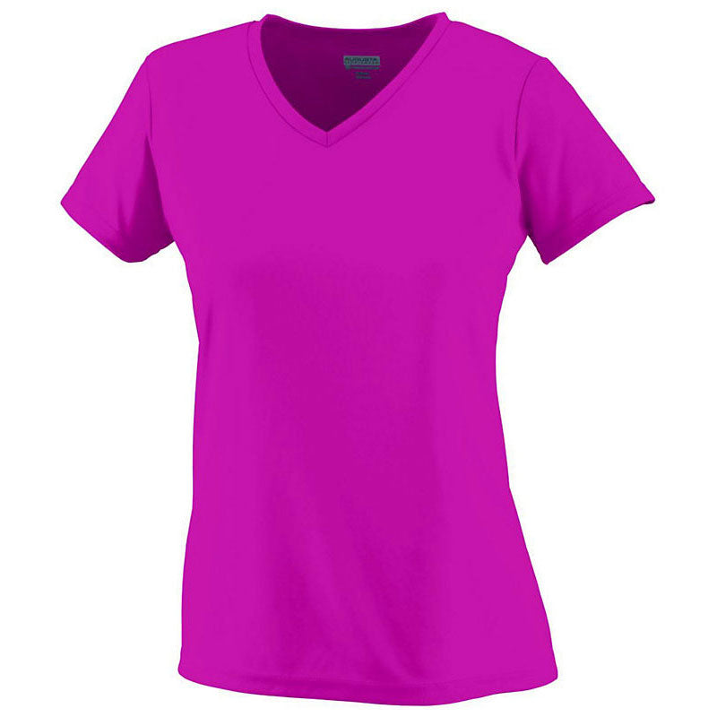 The logoed Augusta Sportswear Women's Power Pink Wicking-T-Shirt is the perfect shirt to wear to the gym or when taking part in all of your favorite outdoor activities. Available in 20 different vivid colors, this attractive t-shirt comes complete with many must-have features, including wicking capabilities, v-neck collar, heat sealed label, double-needle hem sleeves and bottom, and more. With your company logo set in embroidery on this soon-to-be favorite shirt, you have a new employee apparel option or clothing item to hand out to guests at trade shows, recruiting events and corporate golf events.Corresponding Men's Style: Augusta Sportswear Men's Power Pink Wicking T-Shirt