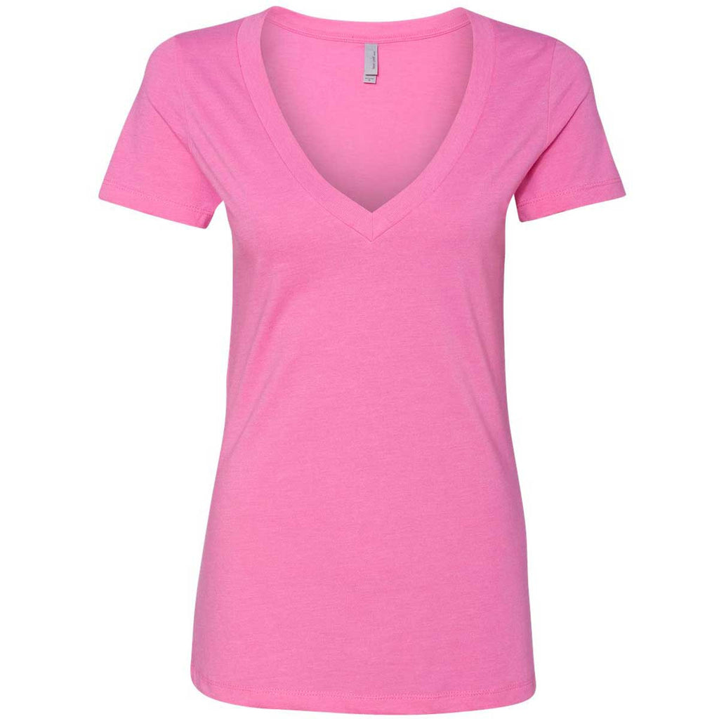 Adding another plain ol' crewneck tee to the outfit isn't always exciting. If you've ever agreed with that statement, perhaps it's time to switch to this Next Level Women's Hot Pink CVC Deep V Tee. Not only does it offer a degree of style that you can't get with the usual tee, but it has all the comfort and carefree attitude of a crewneck. If only all shirts could give you an added layer of interest in your outfit without feeling like they added another layer of discomfort as well. But thankfully, v-necks like this can rescue a drab wardrobe in a hurry. With Merchology, you can add a custom logo to take this v-neck to the next level.Setup includes free 2-color logo on 1 location. If you need more colors added to your logo, or another imprint location, please inquire with a Merchologist.