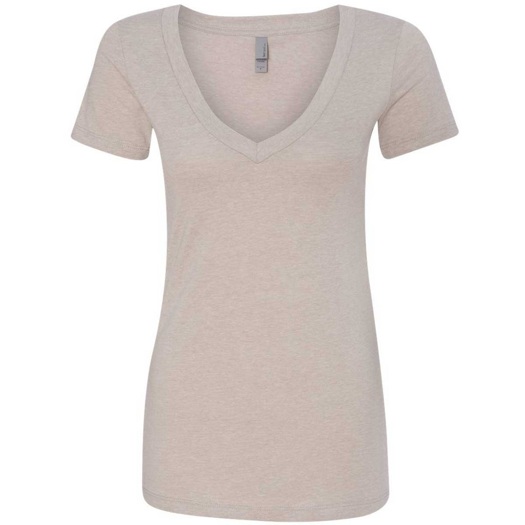 Adding another plain ol' crewneck tee to the outfit isn't always exciting. If you've ever agreed with that statement, perhaps it's time to switch to this Next Level Women's Sand CVC Deep V Tee. Not only does it offer a degree of style that you can't get with the usual tee, but it has all the comfort and carefree attitude of a crewneck. If only all shirts could give you an added layer of interest in your outfit without feeling like they added another layer of discomfort as well. But thankfully, v-necks like this can rescue a drab wardrobe in a hurry. With Merchology, you can add a custom logo to take this v-neck to the next level.Setup includes free 2-color logo on 1 location. If you need more colors added to your logo, or another imprint location, please inquire with a Merchologist.