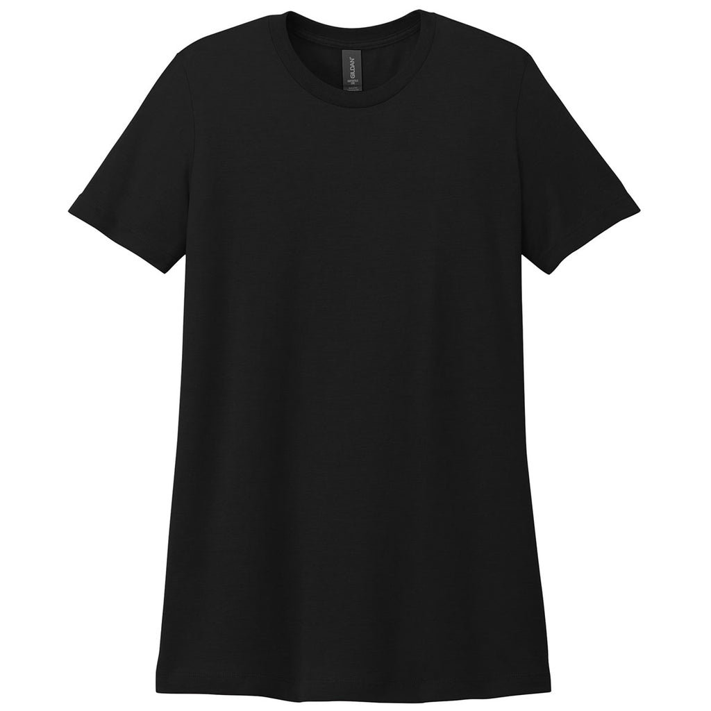 A simple silhouette and a flattering fit make the Gildan Women's Pitch Black Softstyle CVC T-Shirt the perfect way for the ladies on your team to show off your company's custom logo or design. Ideal for athletes or anyone with an active lifestyle, it's made from a breathable fabric that will always keep your team comfortable.