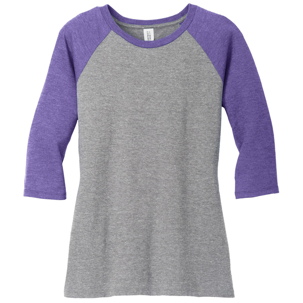 District Women's Purple Frost/ Grey Frost Perfect Tri 3/4-Sleeve Raglan