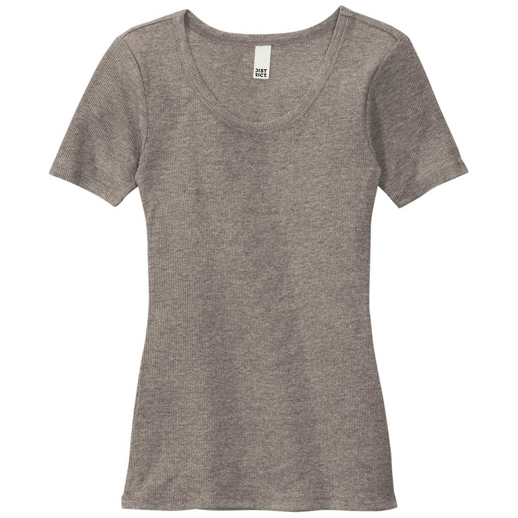 Choose screen printing for the District Women's Grey Frost V.I.T. Rib Scoop Neck Tee to enjoy a unique look for your personal wardrobe or as custom gifts. The combed ring spun cotton and polyester blend is versatile in the most important ways. Perfect as a stand alone rib tee or to layer with a sweater, sweatshirt, or hoodie. The simple design is ideal as employee apparel or as part of a uniform with a company logo printed on. This affordable option is great as an addition to any logoed apparel line with your custom logo. Place an order today to have these ready to go as soon as possible.Highlights