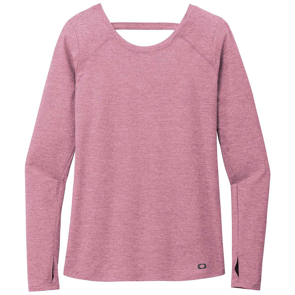 Make a statement with a screen print OGIO Women's Lilac Heather Endurance Force Long Sleeve Tee. The poly and spandex blend offer flatlock seams and stretch for the ultimate in comfort. Add a company logo to use these as part of company uniforms or an organizational name to use as part of an event. The unique look with cutout back with strap and thumbholes allow this tee to go from the corporate office to a night out with ease. Order several to use as end of the year gifts for all or employee gifts for those who work their hardest. Choose your design and place your order today.