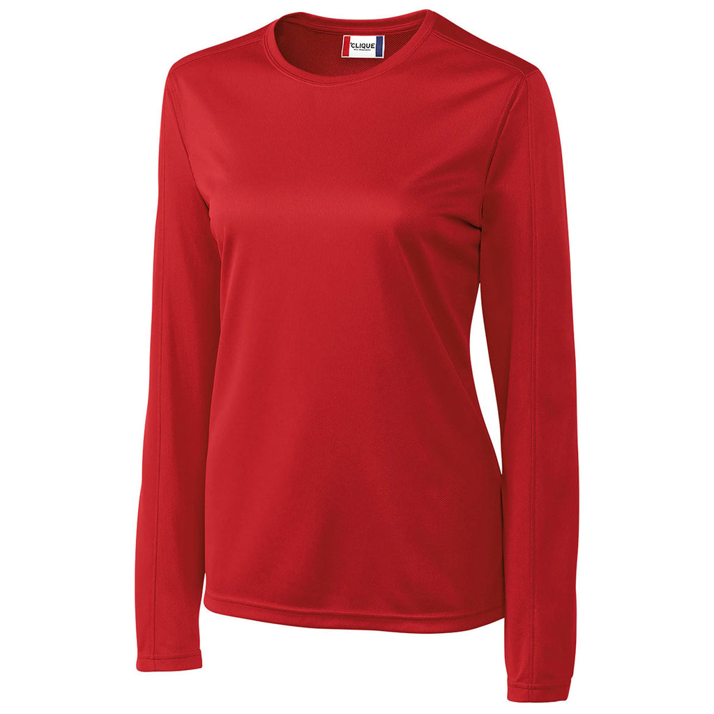 The Clique Women's Red Long Sleeve Ice Tee offers casual comfort that's sure to be a favorite in your closet. With your company logo added to the shirt in screen print, you can make this shirt even better by adding an advertising component to it. This women's long-sleeve shirt comes in a variety of vibrant colors and offers many wonderful features including a cozy 100% polyester mesh material, double layer neck trim, pieced shoulders and sleeves, fully taped neck seam, and moisture wicking components. Buy this item to hand out at your upcoming corporate events, including trade shows, recruiting events, and more.Corresponding Men's Style:Clique Men's Red Long Sleeve Ice Tee