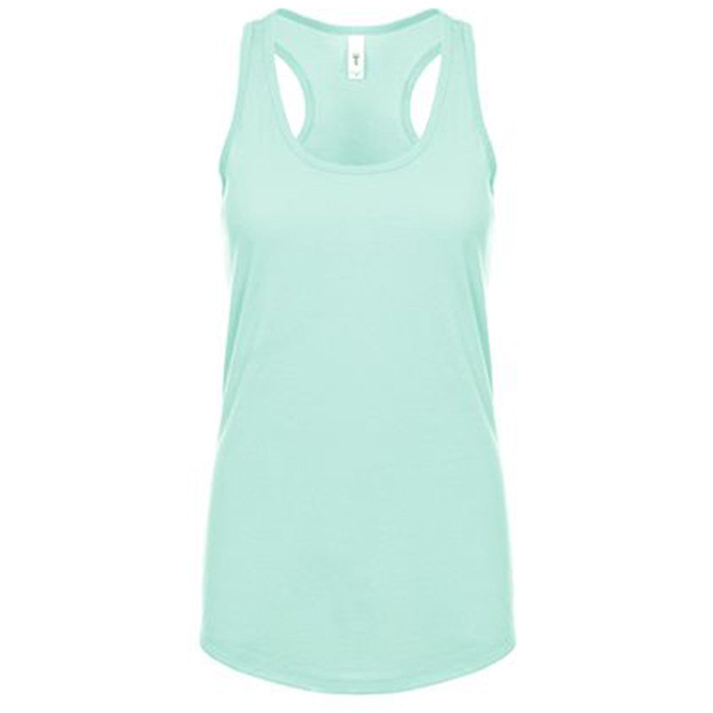 You thought you knew everything there was to know about WoMen's tanks. Then you met the Next Level Women's Mint Ideal Racerback Tank and, well, now you see there was much more to know. Allow us to fill in the blanks: comfortable, lightweight fabric gives the tank a casual feel. The self-fabric detailing makes for sartorially smart layering. And with enough strength and durability to put up with a regular fight in the wash, you'd be surprised at just how long this tank can last. Almost like an actual tank. Simply add your custom logo to up your unique brand's status.Setup includes free 2-color logo on 1 location. If you need more colors added to your logo, or another imprint location, please inquire with a Merchologist.