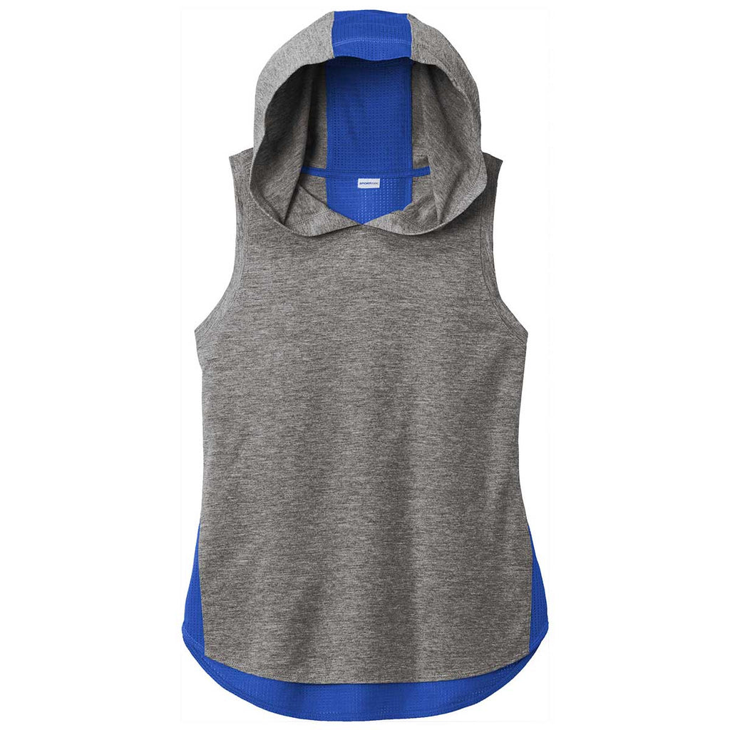 Sport-Tek Women's True Royal/Dark Grey Heather PosiCharge Tri-Blend Wicking Draft Hoodie Tank