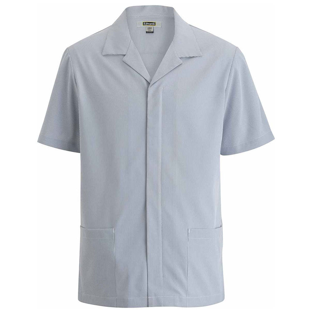 Embroidery will look amazing on the Edwards Men's Navy Peony Pincord Pincord Ultra-Stretch Tunic that can easily be used as a uniform or employee apparel with ease. The traditional fit of this tunic with an open collar and hidden zipper placket creates a well put together look that can be worn over almost any type of top. Perfect for those in almost any service industry, the moisture wicking fabric can be laundered industrially with ease after a hard day's work. Try a custom logo to add these to your logoed apparel selection to maintain continuity in a company.Highlights
