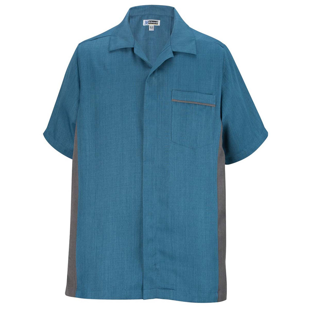 Add a custom embroidery to the Edwards Men's Imperial Blue Premier Service Shirt to create a look unique to your company or organization. Made of 100% polyester the contemporary styling of this comfortable to wear, easily washable shirt is unmatched. Available in six color combinations this service shirt is ideal as part of employee apparel when paired with slacks or as corporate uniforms for large organizations. The snap top button and reverse front zipper creates a tidy appearance on the short sleeve shirt with contrasting side panels and piping.Highlights