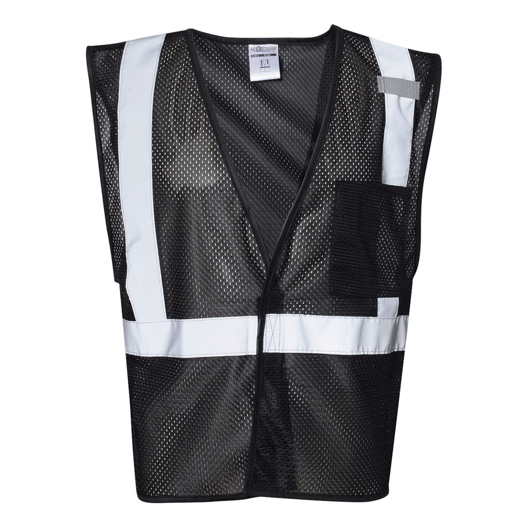 Safety first with an ML Kishigo Men's Black Enhanced Visibility Non-ANSI Vest. Make sure your company based workers are safe when out on the job with the 100% polyester mesh vest with a 4 inch wide hook and loop front closure. Perfect as workwear in the industrial apparel line, this vest has a left chest mic tab and left chest pocket for a radio clip or other small items. For those who need to be outdoors in the warmer months as flagmen, working high lines, or any other job in which they need to be noticed, this is a must have.Highlights
