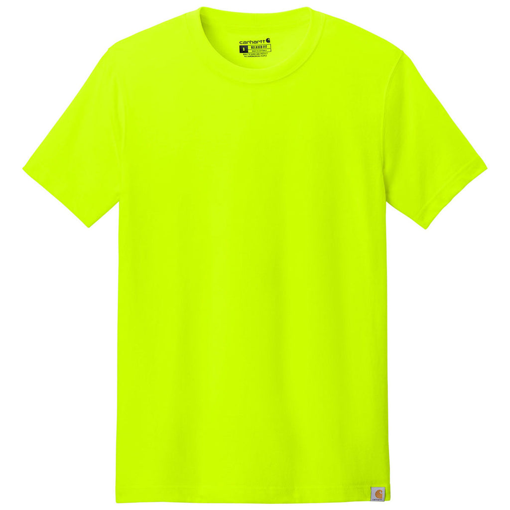 The corporate logoed Carhartt Men's Brite Lime Short Sleeve T-Shirt combines rugged durability with all-day comfort. Crafted from heavyweight cotton, it stands up to demanding tasks while offering a breathable feel. Ideal for hard workers or those needing a dependable casual option, this t-shirt ensures long-lasting wear without compromising comfort or style.This product can only ship within the United States and Canada.