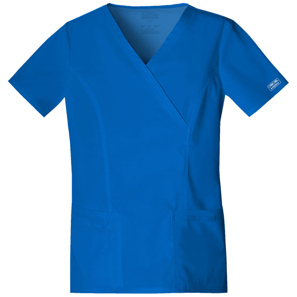 Let's face it: workwear isn't always ideal. And getting work done in an effective, efficient top while feeling good and comfortable isn't always easy. With this Cherokee Workwear Women's Royal Blue Premium Core Stretch Mock Wrap Top is a breeze.Highlights