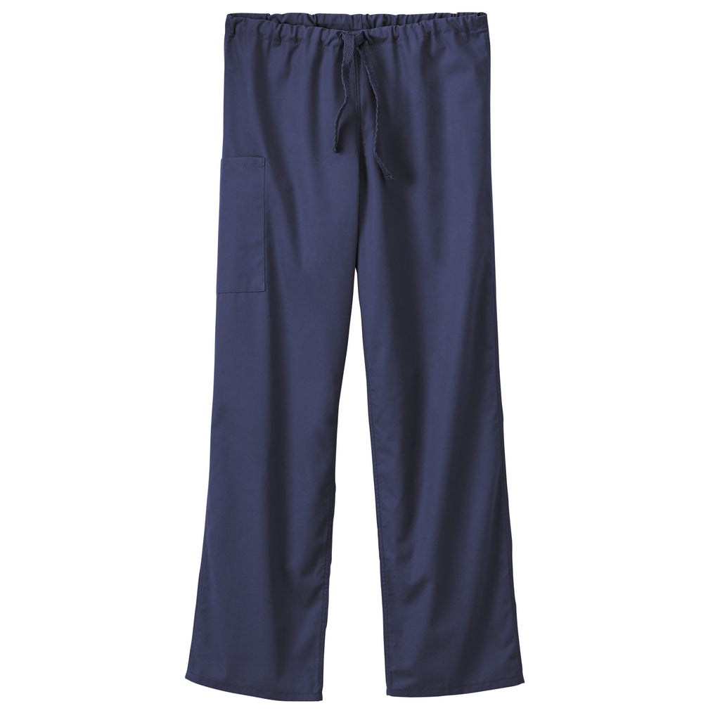 You don't have to sacrifice style for functionality with White Swan New Navy Fundamentals Drawstring Pant. These pants are designed with gender-neutral details that include a comfortable 18" leg opening, elastic waist with drawstring for an easy, comfortable fit and non-contrasting stitching. Crafted with breathable polyester-cotton blend with a touch of poplin making it wrinkle-resistant and shielded with Soil Release finish for stain-free life. Make this scrub pants par distinctively yours by adding an embroidered logo or font with our quick and affordable customization service. Ideal for hospitals, healthcare centers, dental offices, medical response teams.Highlights