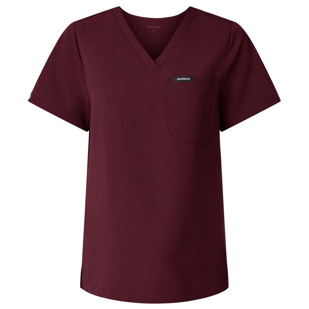 Jaanuu Women's Burgundy Rhena Essential 1-Pocket Scrub V-Neck Top