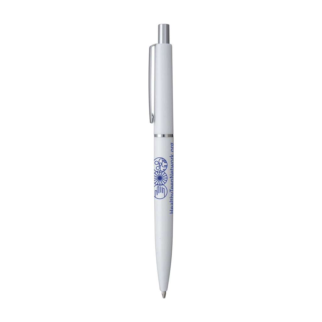 Hub Pens White Attache Pen with Black Ink and a corporate logo are a simple and economical way to share your company and brand. The simple white pen will get your logo noticed whether handing them out to potential clients or using them in the office. Black ink is perfect for most documents.