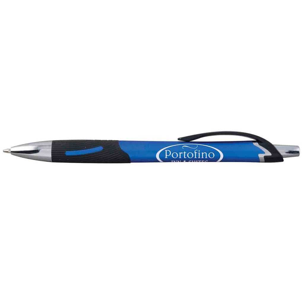 Push a button to eject or retract a Hub Pens Blue Akoni Pen tip that consistently delivers ink on all types of writing surfaces. Ballpoint quality writing keeps you on top of taking notes during business seminars and conferences. Market your company by giving the pen away on customer and employee appreciation days. All you have to do is add your corporate logo to spread the word about your company in the community. Screen printing makes it easy for potential customers to recognize your brand. The raised rubber grip prevents finger and hand pain that results from frequent use of the pen.