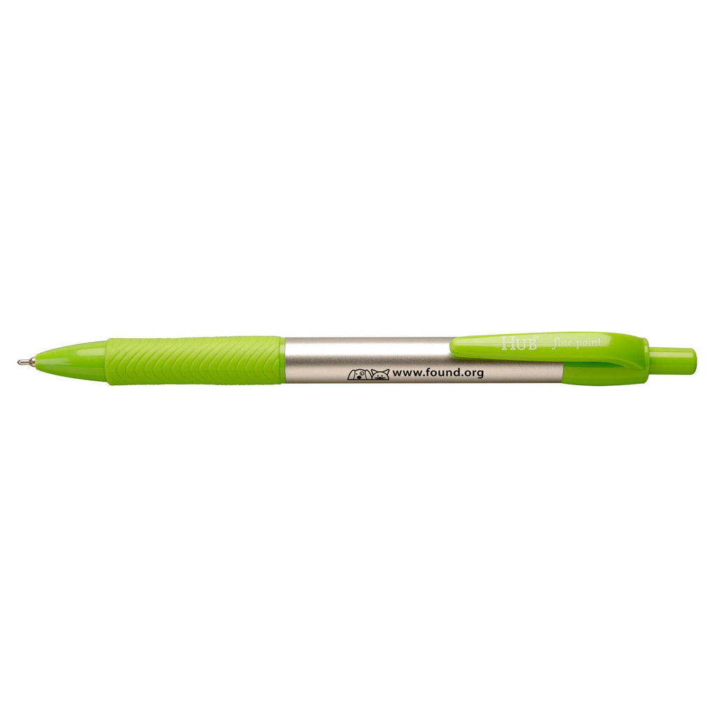 The Hub Pens Lime Xact Chrome Fine Point Pen has everything you need in your custom-logoed promotional pen ultra-fine tip for ultimate precision, shimmering silver barrel, and a ribbed rubber grip for writing comfort. Filled with patented hybrid ink, it's a great way to keep your business's logo in front of the audience on a daily basis.
