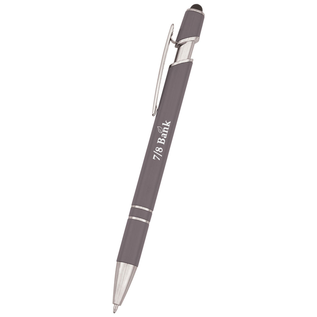 Hit Grey Roslin Incline Stylus Pen with your custom logo is a simple and economical way to share your brand or message. Available in a range of colors, this stylus pen is clickable and has smooth writing. You can easily take notes and then flip it around to use the stylus on your iPad or screen. Great for the office, home, or anywhere you need to be productive.