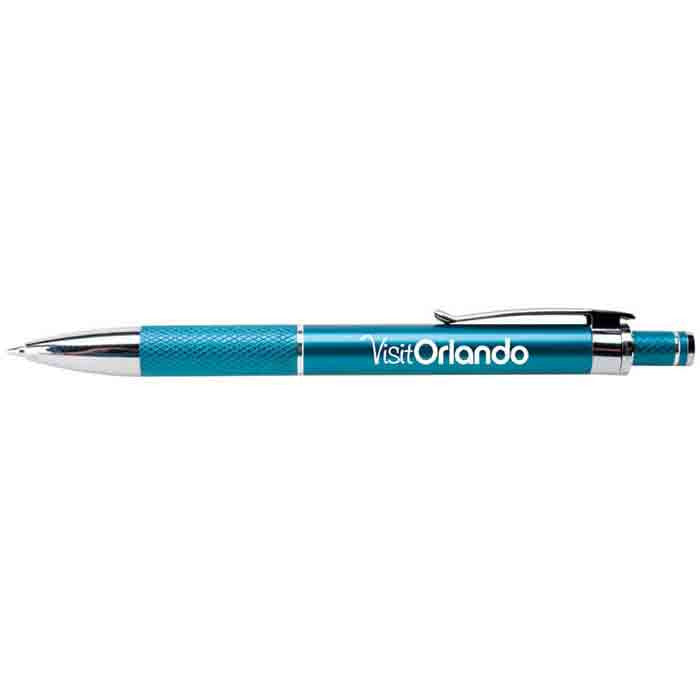 Push retractable action ensures you always see a tip pop out of this popular Hub Pens Teal Aruba Pen designed and manufactured by Hub Pen. The highly durable tip delivers even applications of ink to prevent splotches from making your handwritten notes unrecognizable. Hub Pen ink also never bleeds into paper or other types of writing surfaces. The functional stylus gives you the flexibility to send electronic messages to colleagues back at the home office. Soft rubber molded on the stylus tip never scratches or smudges sensitive capacitive touchscreen surfaces. Attach your company logo to attract the interest of customer prospects.