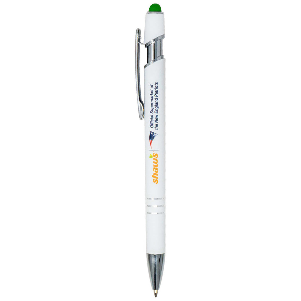 Hub Pens Green Textari Comfort Cloud Stylus Pen with a corporate design will leave you on cloud nine. This rubberized pure white metal barrel with colorful stylus tips combines writing comfort and stylus functionality. Ideal for those who are always on the go, this pen can be shared with recruits, traveling agents, and work-from-home employees. Order today.The minimum order for this product is 100 pieces.