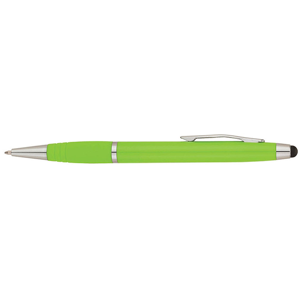 A smooth writing tool on one end, conductive stylus on other make this Epic Valumark Green Pen/Stylus a double-edged writing instrument. A twist-action mechanism, colored grip, and chrome details enliven this pen for an aesthetic appeal. Emblazon this pen by imprinting your custom logo or company name to impress your prospective clients.