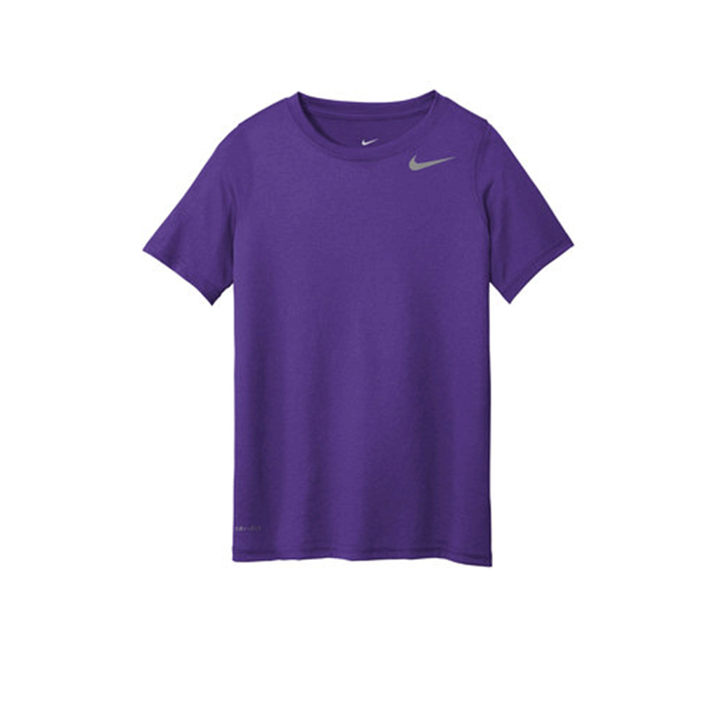 Create a custom team uniform with the Nike Youth Court Purple Legend Tee. This youth version of the Legend tee is a Nike staple in athleisure apparel that can serve many functions. Add a company logo to use as a uniform for a sports team that you support or a custom logo to offer for younger people who are part of your organization or cause. The legendary tee offers Dri-FIT technology to wick away sweat whether playing the infield, enjoying a pick-up game at the park, or working out on your own. Highly durable with tag free comfort, this polyester jersey is lightweight and ready for whatever you do.