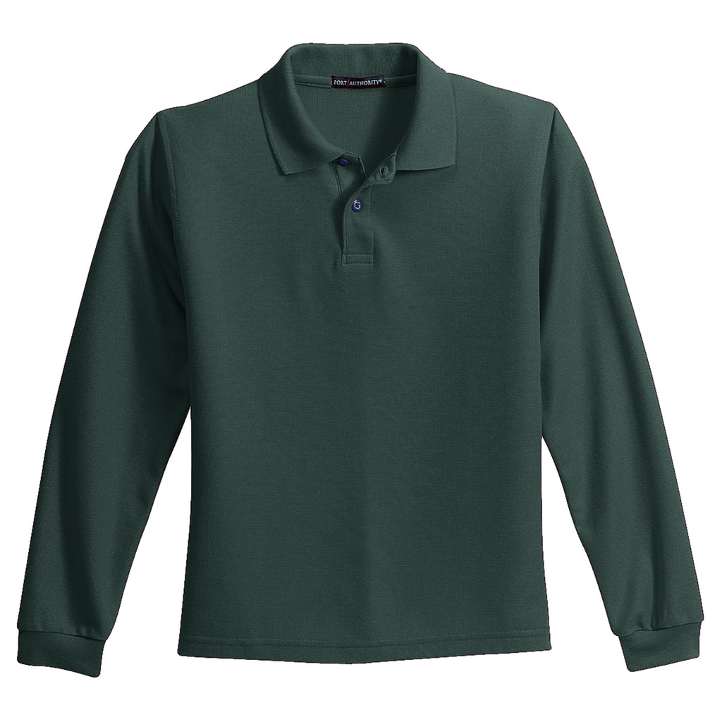 Port Authority Youth Dark Green Long Sleeve Silk Touch Polo