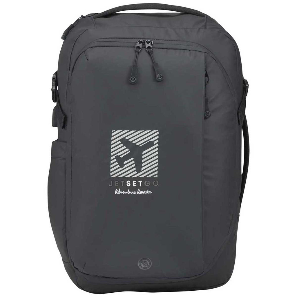 Need a full-sized custom backpack? The Elleven Black Numinous 15" Computer Travel Backpack features organizational storage options for your tech items and other essentials. Other than a dedicated laptop compartment, this backpack also has a hidden RFID pocket where you can store your credit card for added security. Add your brand's touch by embroidering your company logo - use the customized piece as an event giveaway or employee gift!The minimum order for this product is 6 pieces.