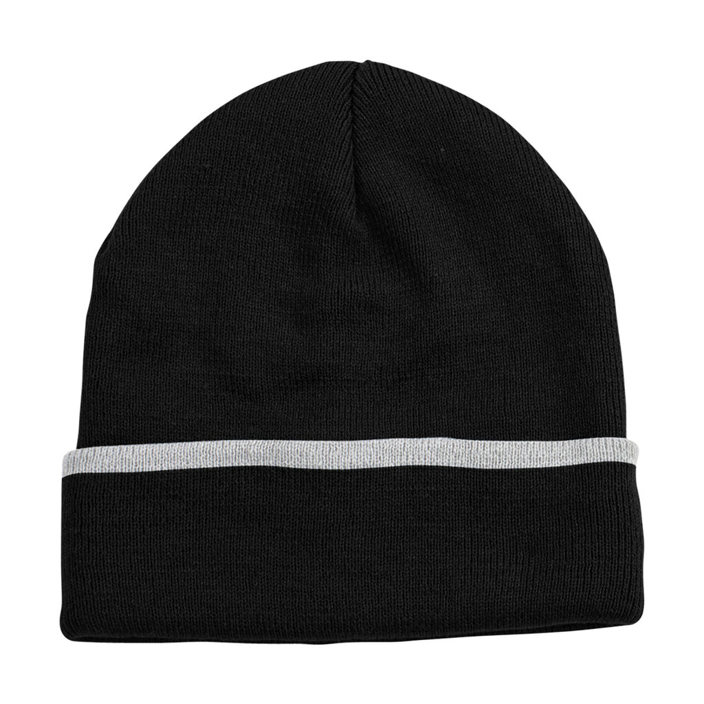 Fashion stripe detail and a longer length to create fold over options put the company logoed Vantage Black Edge Stripe Knit Beanie on the highest rung of the fashion ladder. The folder over beanie with a light gray stripe edge will grab the attention of the professionals you meet at networking events. Attach your corporate logo on the large imprint area to turn customer prospects into avid fans of your company. The cotton and acrylic blended beanie withstands the stress of frequent use to give you a beanie that last for years to come. Enjoy the soft feel of cotton that keeps you pushing forward all day long.Highlights