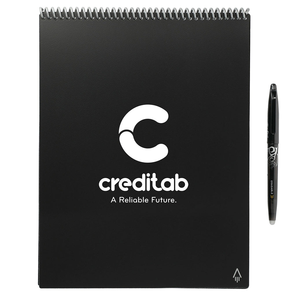The RocketBook Letter Flip Notebook Set features a contemporary notepad that is a must-have item for any event giveaway or employee welcome package. Write on the synthetic lined paper using the Pilot Frixion pen. Then, wipe it away and start again. The all black cover will also showcase your company’s custom logo.