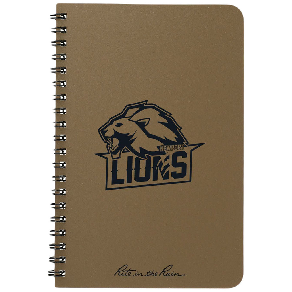 This Rite in the Rain Tan 4.6" x 7" Side Spiral Notebook is a promotional giveaway item that everyone will have use for. Great for students or professionals alike, your company or team's custom logo or design will make a statement on the durable cover. All-weather paper allows you to write anywhere, anytime.