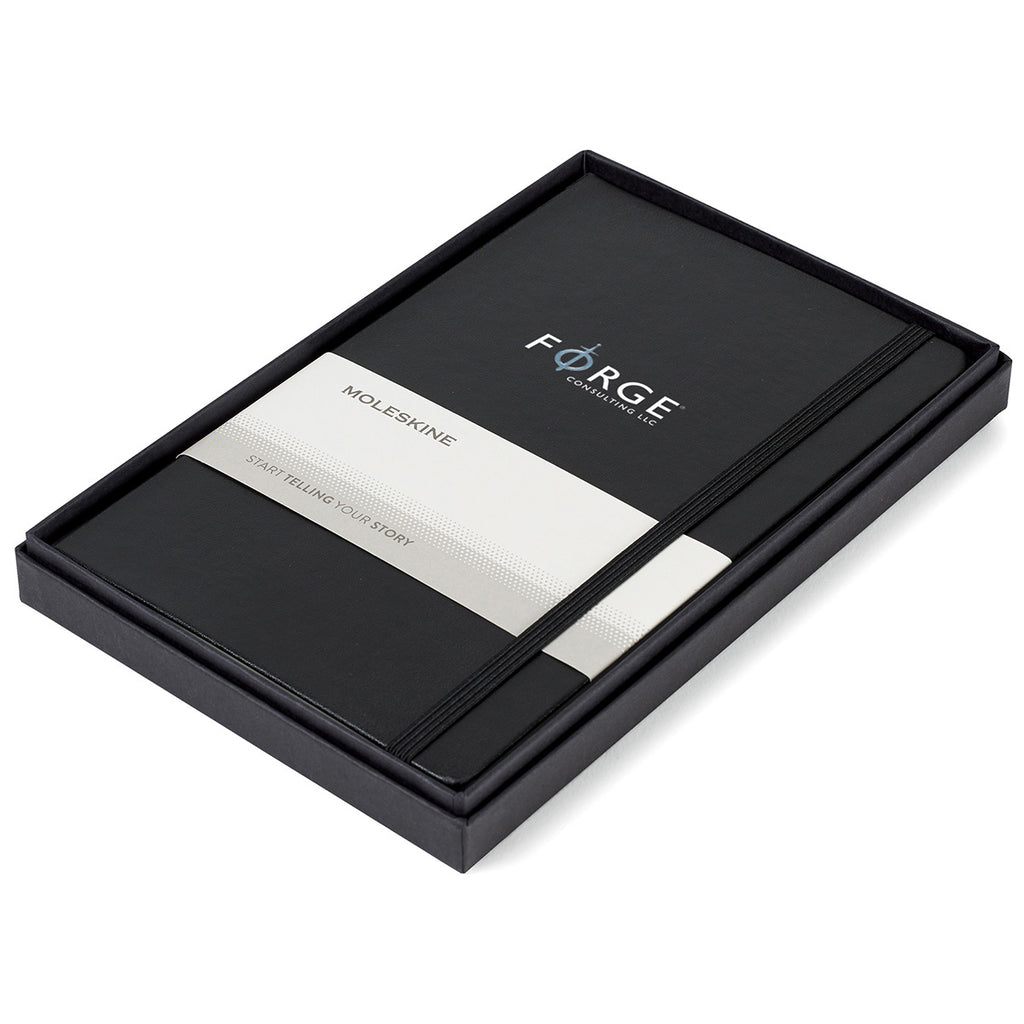 Print your custom logo on the Moleskine Black Large Notebook Gift Set and use the personalized item as an event giveaway or employee gift - create a different style out of your brand by choosing either the print or deboss option. This set includes a Hard Cover Large Notebook in a two-piece Moleskine special gift box.