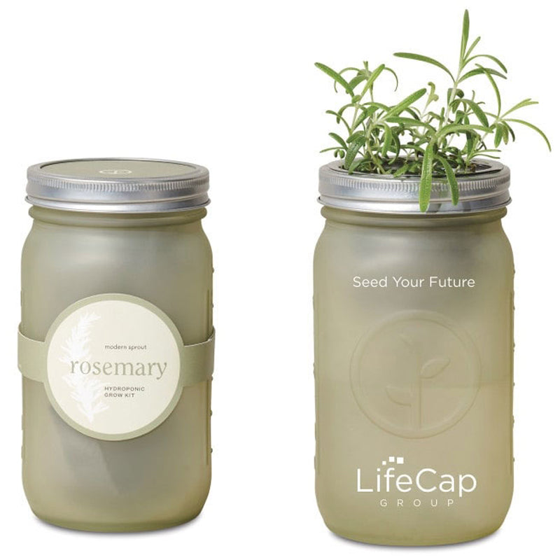 - Self-watering herb kit with vintage-inspired mason jar outfitted with a passive hydroponic system known as 'wicking," which brings water and nutrients up to the plant's root to prevent over-watering or under-watering