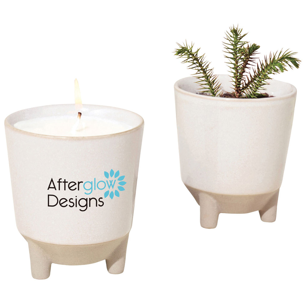 This Modern Sprout Ice Blue Glow & Grow Live Well Gift Set features a two-in-one item with undeniable charm. When the candle in the ceramic candle holder burns away, use the included seeds to grow a beautiful plant in its place. The only thing that will make it better is your company's logo printed on the exterior.