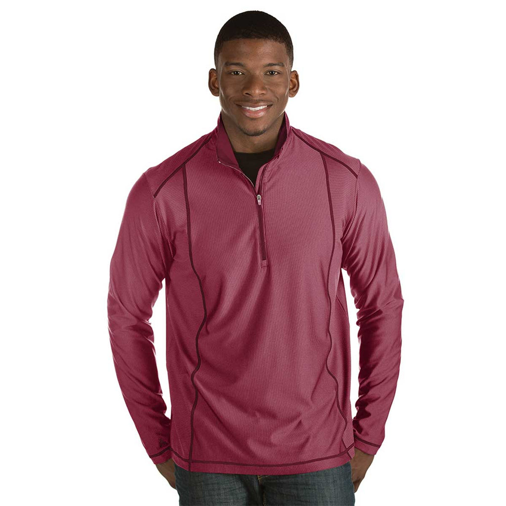 If you're looking for your next custom quarter zip look no further than the Antigua Men's Cabernet Heather Tempo Quarter Zip. Wear the versatile layering piece to work and after the workday when you tee off at your favorite golf course. The jacket is comfortable for all day wear, and has high quality construction to ensure it keeps its look after frequent use. Add your company on the large imprint area to take your brand to the next level. Your employees are sure to love this Antigua quarter zip. Your brand awareness will benefit from the daily wear of this embroidered layering piece.Highlights