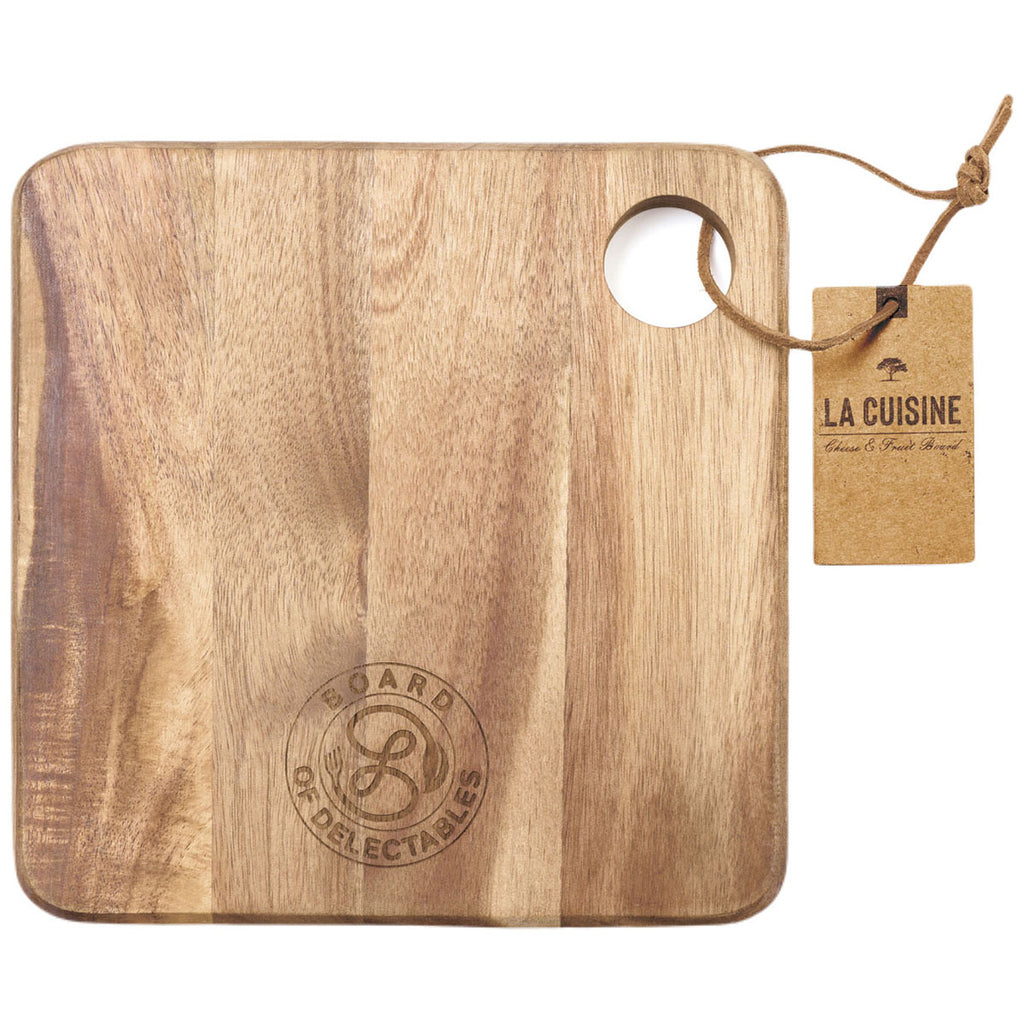 Your company's custom logo or design will look incredibly chic when added to the La Cuisine Wood Cheese & Fruit Board. The perfect way to elevate any kitchen or office party, the stylish Acacia wood will make any fruit board, olive tray, or charcuterie spread look incredibly elevated.