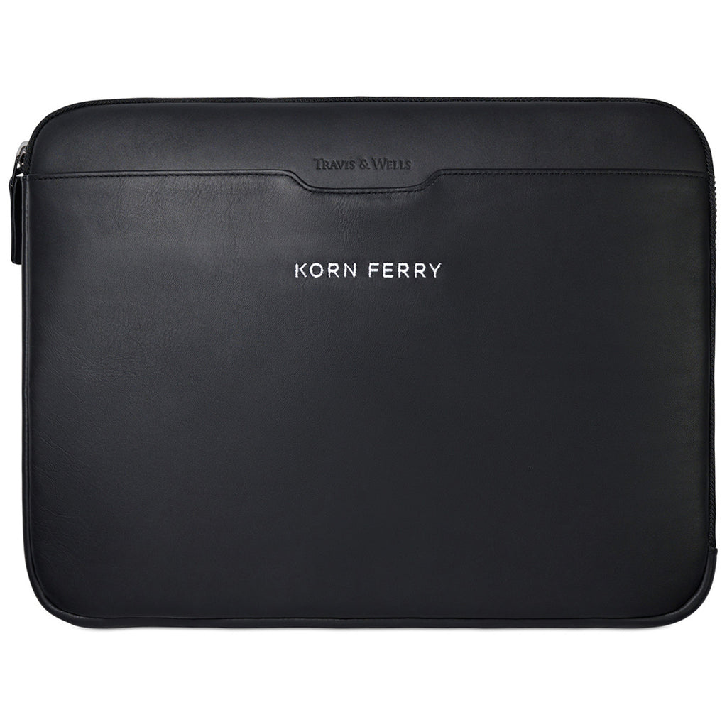 With a custom Travis & Wells Black Envoy Laptop Sleeve your laptop will be protected as you go about your day. Holding up to a 16" laptop with an L-shaped zipper opening and made of top-grain leather, this sleeve is ready for travel, the commute, and everything in between. A suede tech pocket is perfect for all your extras.