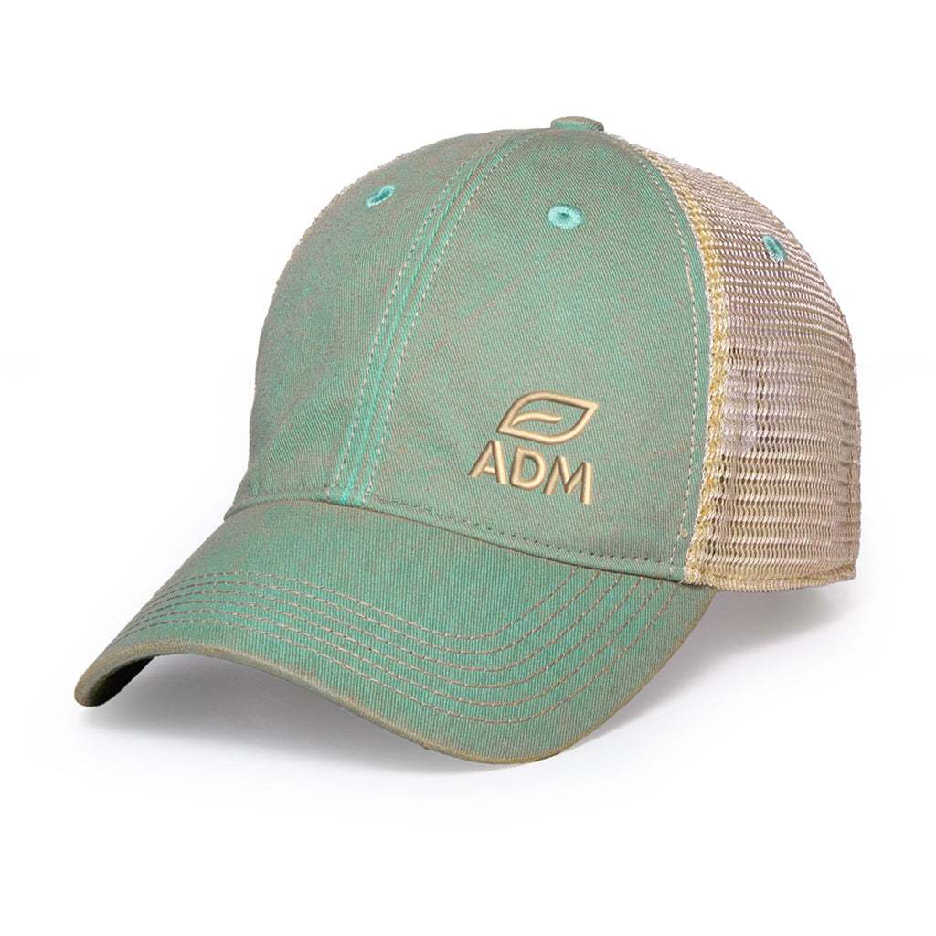 Merrimack Hat Co. Azul/Tan Austin Vintage Trucker with a corporate logo is a fun way to get that lived-in look. This comfortable hat has a vintage wash and soft mesh panels for all-day comfort. A low-profile crown and snap-back closure create a one-size-fits-most design. Ideal for companies, organizations, and promotional items.