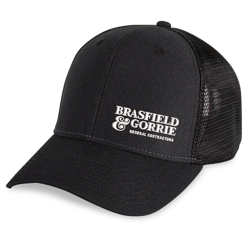 Merrimack Hat Co. Black Casey Trucker custom cap is a fan favorite with the breathable mesh backing and antibacterial headband. The snapback closure is adjustable for most sizes, making it a wonderful promotional item for recruiting events or trade shows. Choose the color combination you like most and get started on an order.