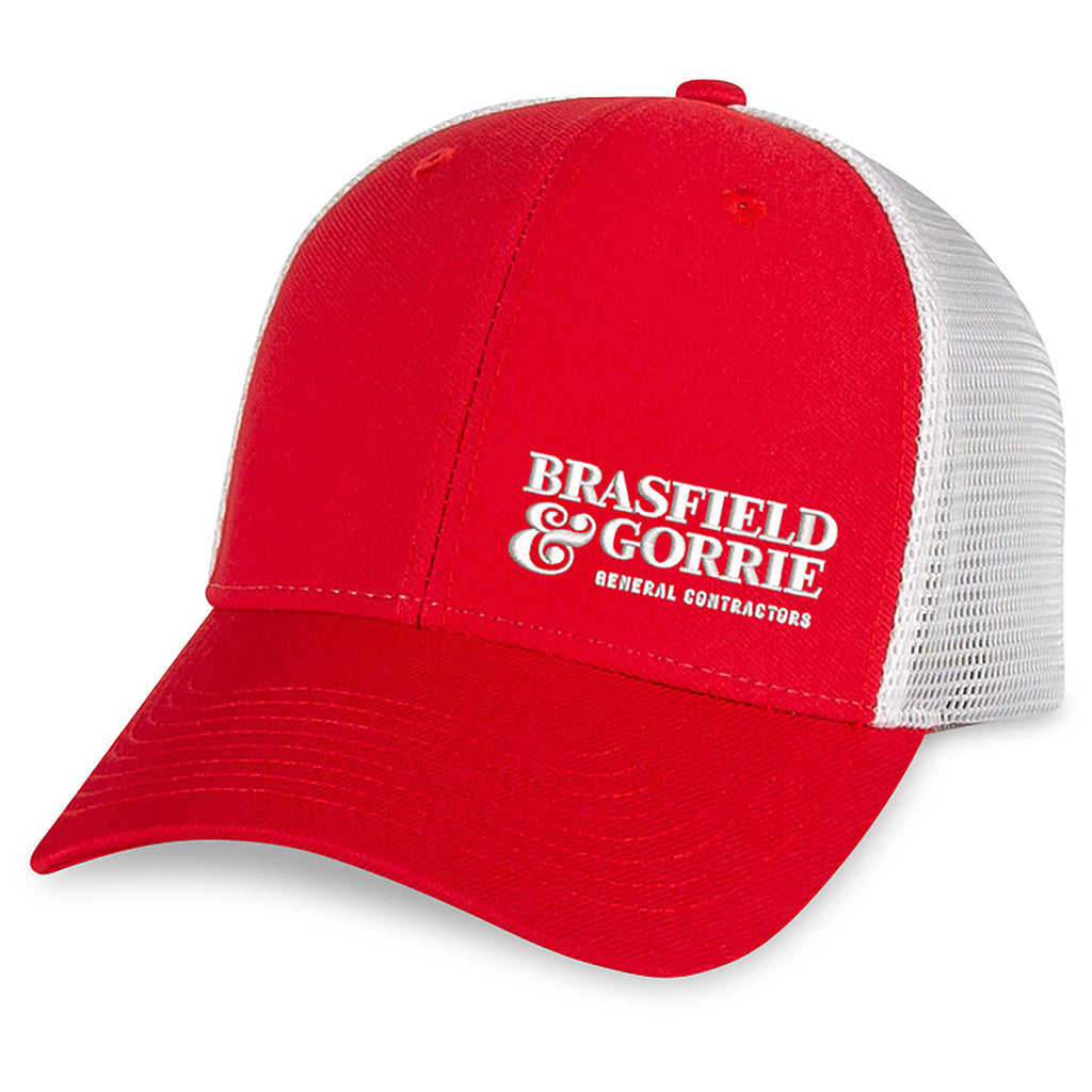 Merrimack Hat Co. Red/White Casey Trucker custom cap is a fan favorite with the breathable mesh backing and antibacterial headband. The snapback closure is adjustable for most sizes, making it a wonderful promotional item for recruiting events or trade shows. Choose the color combination you like most and get started on an order.
